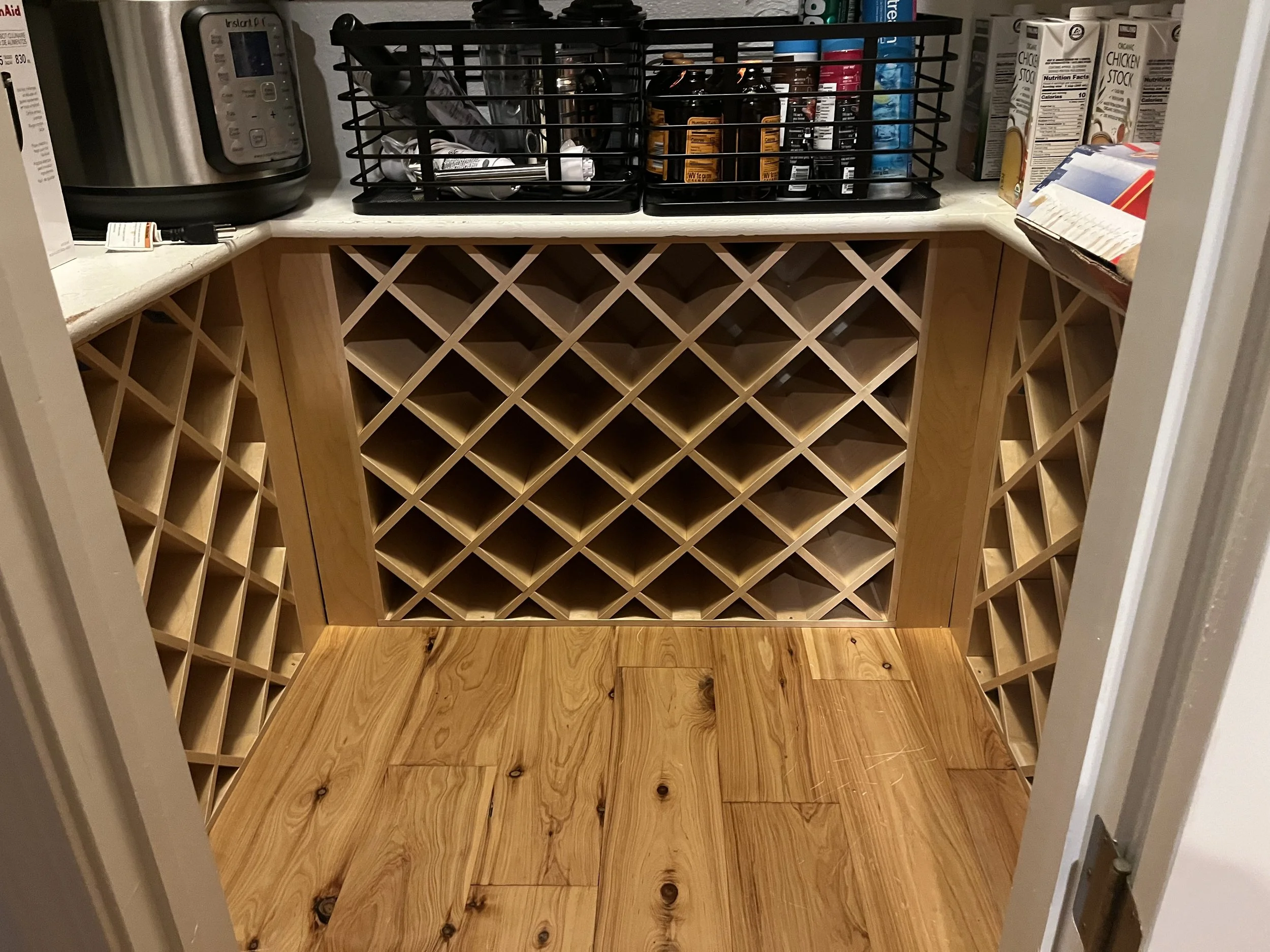 Custom built wine rack inside pantry
